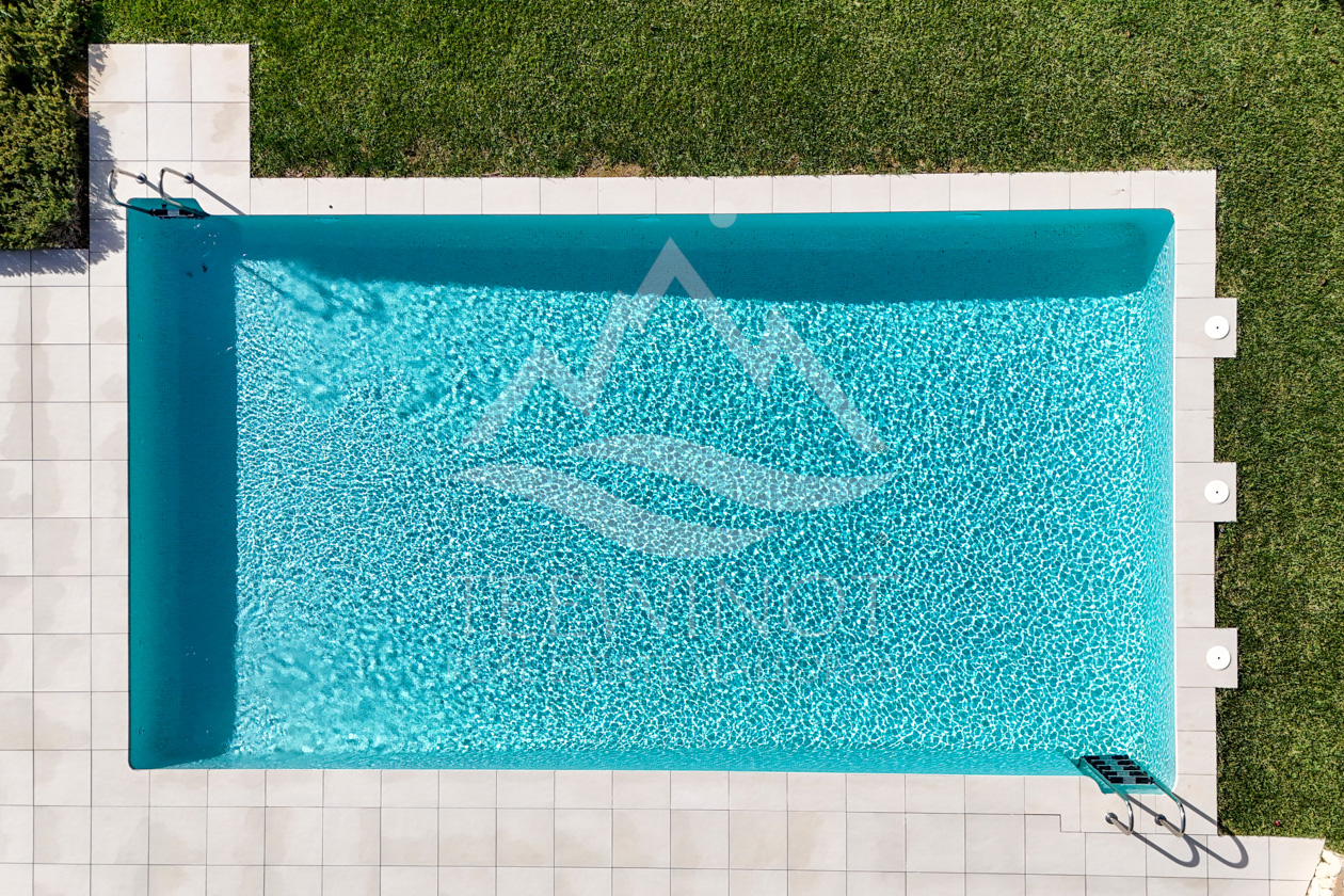 Die gepflegte Anlage bietet großzügige Gemeinschaftsbereiche mit Pool und mediterranen Gartenanlagen. Der Gemeinschaftspool befindet sich in diskreter Lage und bietet ebenfalls viel Privatsphäre – ein perfekter Rückzugsort zum Sonnenbaden oder Schwimmen in ruhiger Atmosphäre.